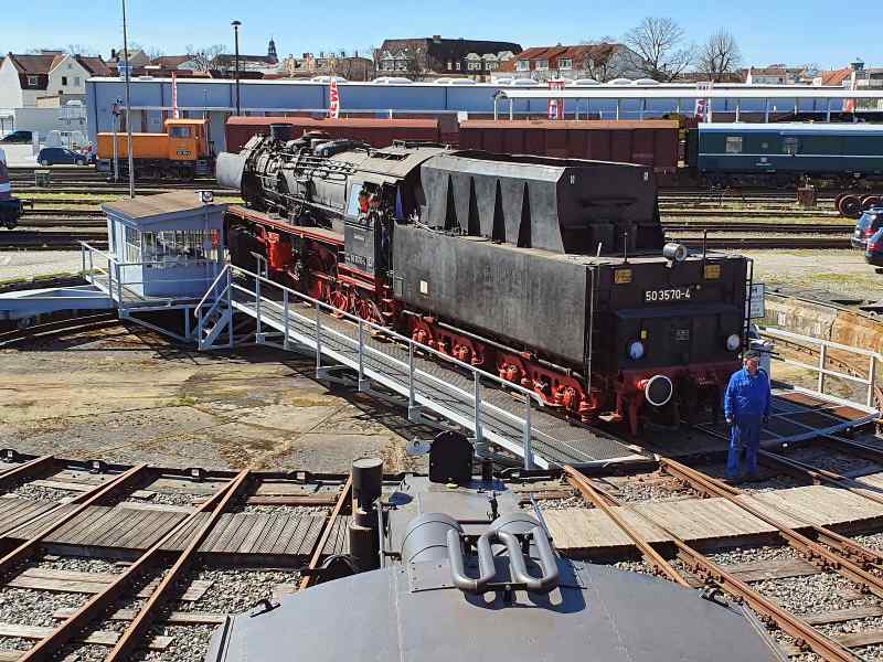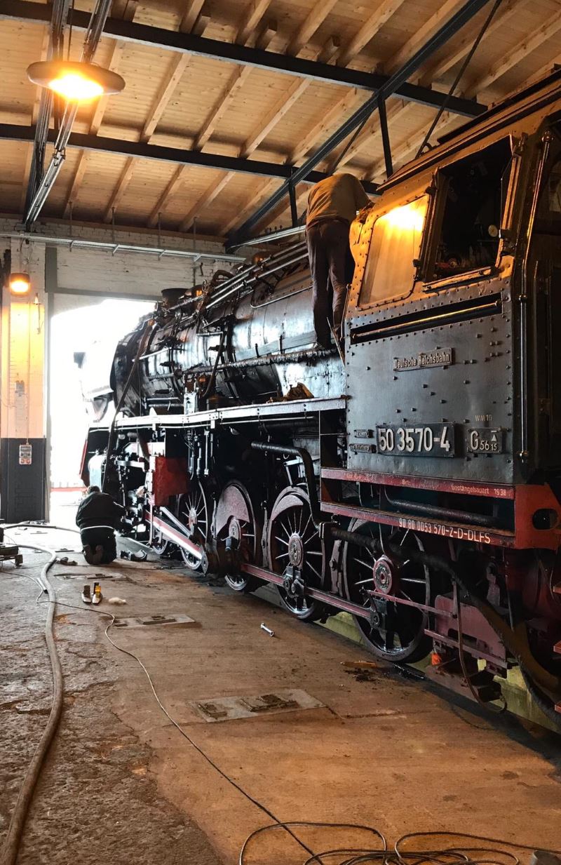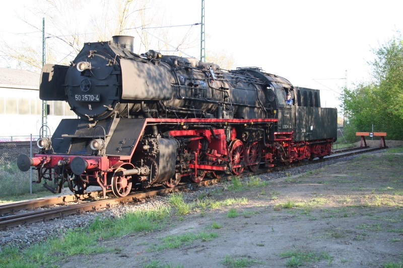 Die Dampflok 50 3570-4 wurde 1942 als eine von mehreren Tausend ihrer Baureihe in Dienst gestellt. Seinerzeit trug sie die Nummer 50 2308. Nach dem Einsatz in der Lokkolonne verblieb sie in der DDR und wurde Ende der 1950er Jahre grundlegend rekonstruiert. Dabei erhielt sie einen neuen fabrikneuen Kessel und trug seitdem die Betriebsnummer 50 3570.