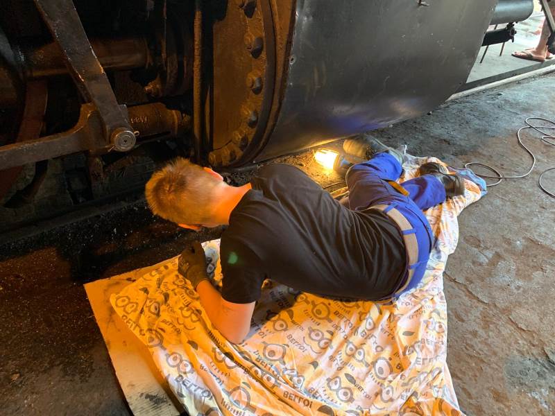 Letzte Handgriffe wurden auch an die Dampflok 50 3570 angelegt. Hier wurden die Zylinderentwässerungen gereinigt und wieder angebaut. Hier konnte sich einer unserer Jugendlichen beweisen und hat seine Sache sehr gut erledigt.