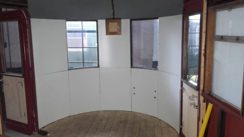 Erwähnenswert ist sonst noch, dass die Aufarbeitung unseres Triebwagen-Beiwagens 197 805 erkennbare Fortschritte macht. Nachdem die Fenster neu eingesetzt wurden, kann nun die neue Innenverkleidung angepasst und eingebaut werden. Hier zwei Bilder vom Baufortschritt: