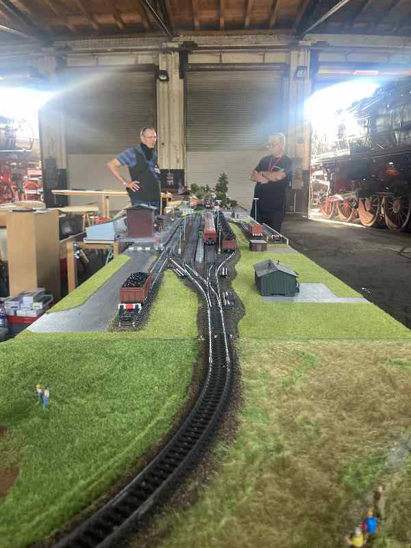 Als ein Highlight haben unsere Kollegen von der "kleinen Eisenbahn" aus Niedersachsen dieses Mal Teile ihrer Modellbahn aufgebaut. Dazu hatten wir extra ein Gleis im Lokschuppen freigeräumt, damit die Kollegen ihre Anlage unter Dach aufbauen konnten.