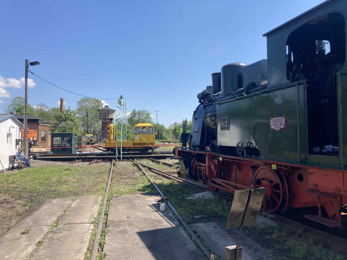 Der Bahnhof Luckau und die angrenzenden Strecken werden derzeit von DBV Förderverein Niederlausitzer Eisenbahn e.V. betrieben. Dieser Verein veranstaltet u.a. an diesem Wochenende ein Bahnhofsfest in Luckau, aus dessen Anlass unsere Dampflok Emma für Führerstandsmitfahrten eingesetzt wird.