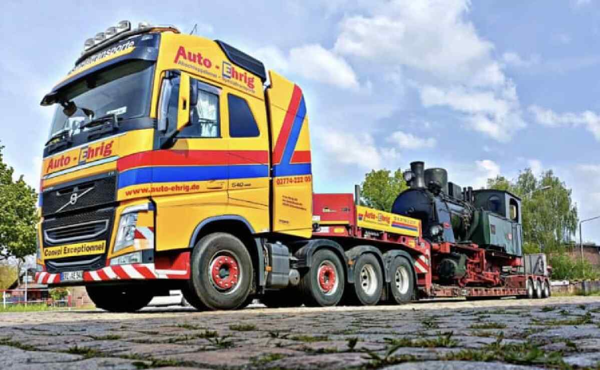Unsere kleine Dampflok Emma soll wieder der heimliche Star der weltgrößten Messe für Eisenbahntechnik in Berlin werden. Diese Messe beginnt am 20.9. und endet am Sonntag darauf. Während dieser Zeit steht Emma für Führerstandsmitfahrten zur Verfügung. Da die kleine Lok nicht selbst den Weg nach Berlin auf eigener Achse zurücklegen kann, hat die Firma DB Schenker sie auf einen Schwertransporter verladen und zur Messe transportiert.