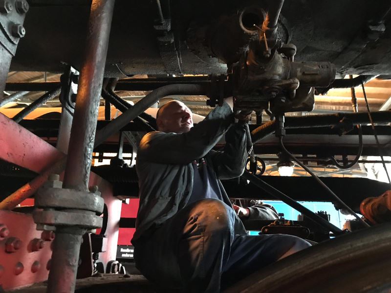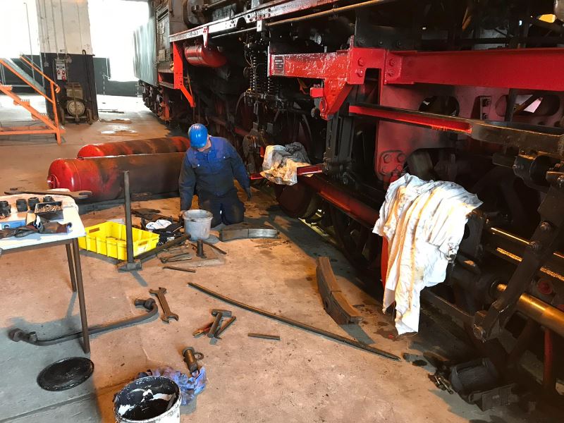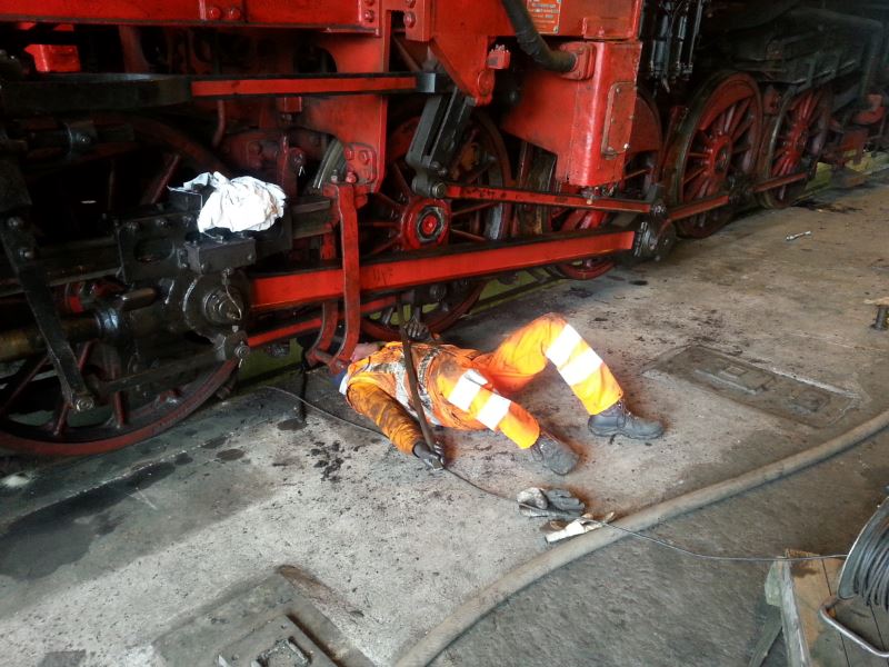 Außerdem wurde an den Achslagern gearbeitet, um den "reibungslosen" Lauf der Lokomotive sicherzustellen. Das ist mitunter eine sehr schmutzige Arbeit. Aber was soll es? Da lohnt sich das Duschen wenigstens.