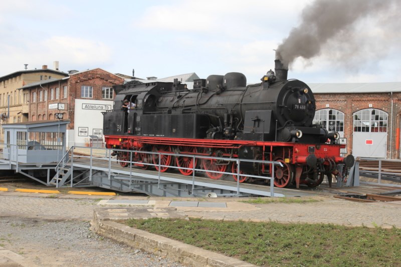 Während der Ausstellungszug im Bahnhof Wittenberge zu besichtigen war, erholte sich die Zuglok 78 468 im Bahnbetriebswerk. Die Lok wird vom Verein "Eisenbahn-Tradition e.V." betrieben, der seinen Sitz in Lengerich hat.
