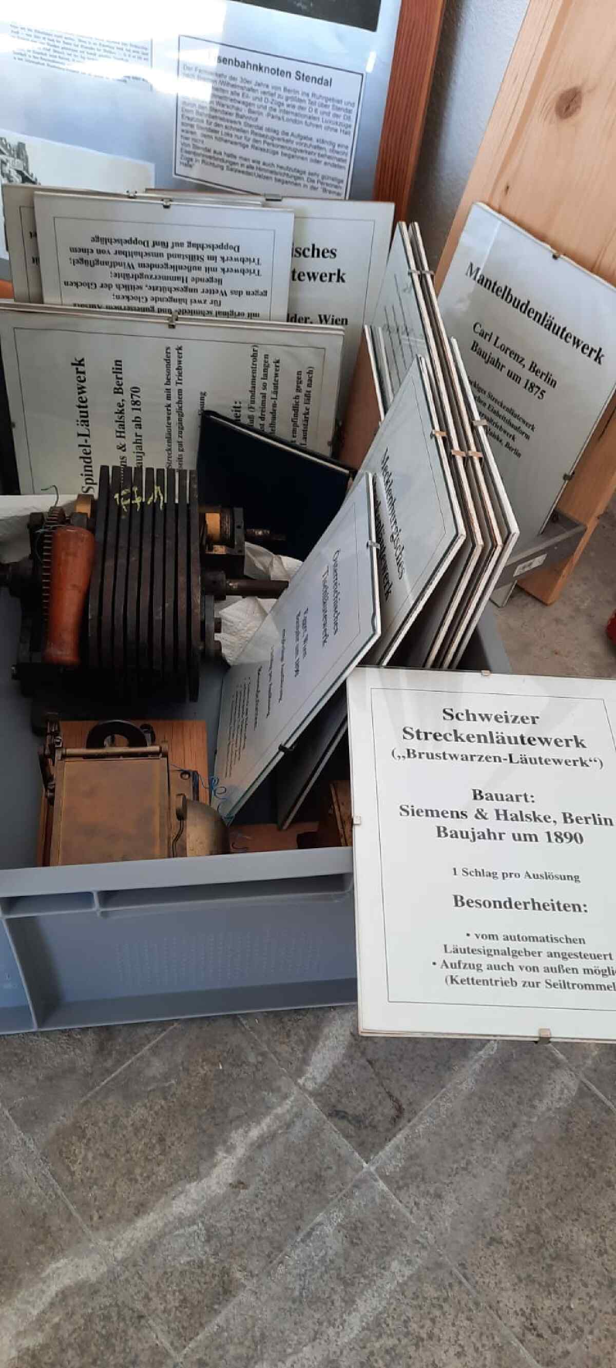 Heute können wir auch über eine weitere kleine Sensation berichten. Zwar ist leider der bekannte Stendaler Fachbuchautor und Eisenbahnliebhaber Wolfgang List vor einiger Zeit verstorben. Wir konnten uns aber mit der Familie dahingehend verständigen, dass unser Museum die umfangreiche Sammlung von Läutewerken übernimmt und ausstellt. Dabei handelt es sich um diverse, teilweise telefonzellengroße Geräte, die vor der Digitalisierung der Eisenbahn der Meldung von ankommenden und abgehenden Zügen per Morsezeichen dienten. Wolfgang List hatte solche Anlagen aus etlichen Teilen Deutschlands vor der Verschrottung bewahrt und in seiner Privatsammlung funktionsfähig restauriert. Nun bekommen die Teile in Wittenberge ihren würdigen Platz. Wir danken den Angehörigen noch einmal sehr herzlich für ihre Bereitschaft, uns die Sammlung zu übergeben. Wir haben vor einigen Tagen mit der Aufstellung der großen Ausstellungsstücke in unserem Freigelände begonnen.