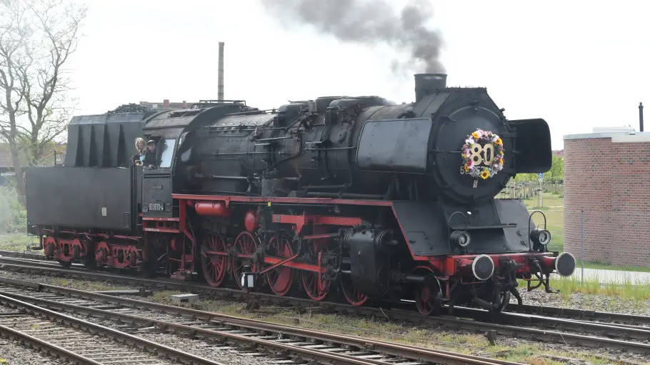 Wittenberge Dennis Kathke hat heute den wohl heißesten Arbeitsplatz auf dem alten Bahnwerk-Gelände in Wittenberge. Er steht im Führerhaus einer mächtigen, schwarzen Dampflok. Hinter ihm die geschlossene Tür zum Feuerherd der alten Dame. Glut schimmert durch die Ritzen. In diesem Monat wird die Lok 80 Jahre alt.