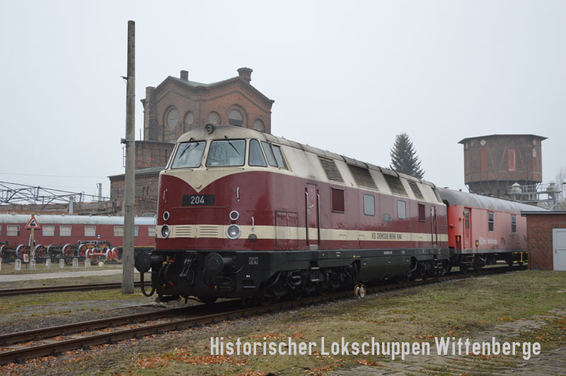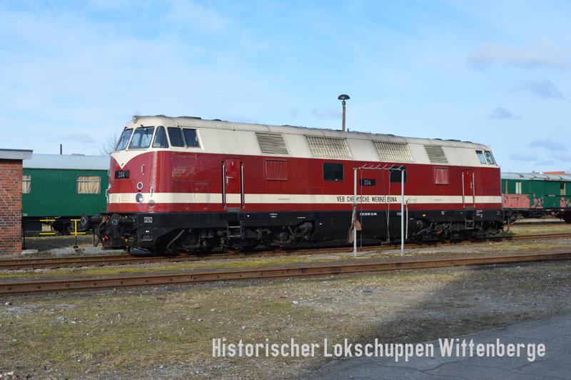 Lok 204 "VEB Chemische Werke Buna" (92 80 1228 501-3 D-WFL) übernachtet im Bw Wittenberge