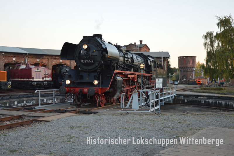 Am Abend des 13. Oktober 2018 nutzte die Schnellzugdampflok 03 2155-4 unsere Infrastruktur vor der Weiterfahrt nach Berlin.