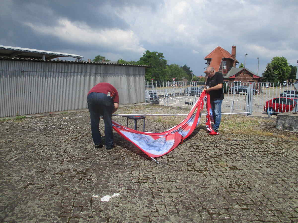 Wir bereiten uns langsam auf den Termin vor. Zunächst haben wir einen Fahnenmast am Eingang gesetzt, damit Sie auch aus etwas größerer Entfernung den Weg zu unserem Eingang finden.