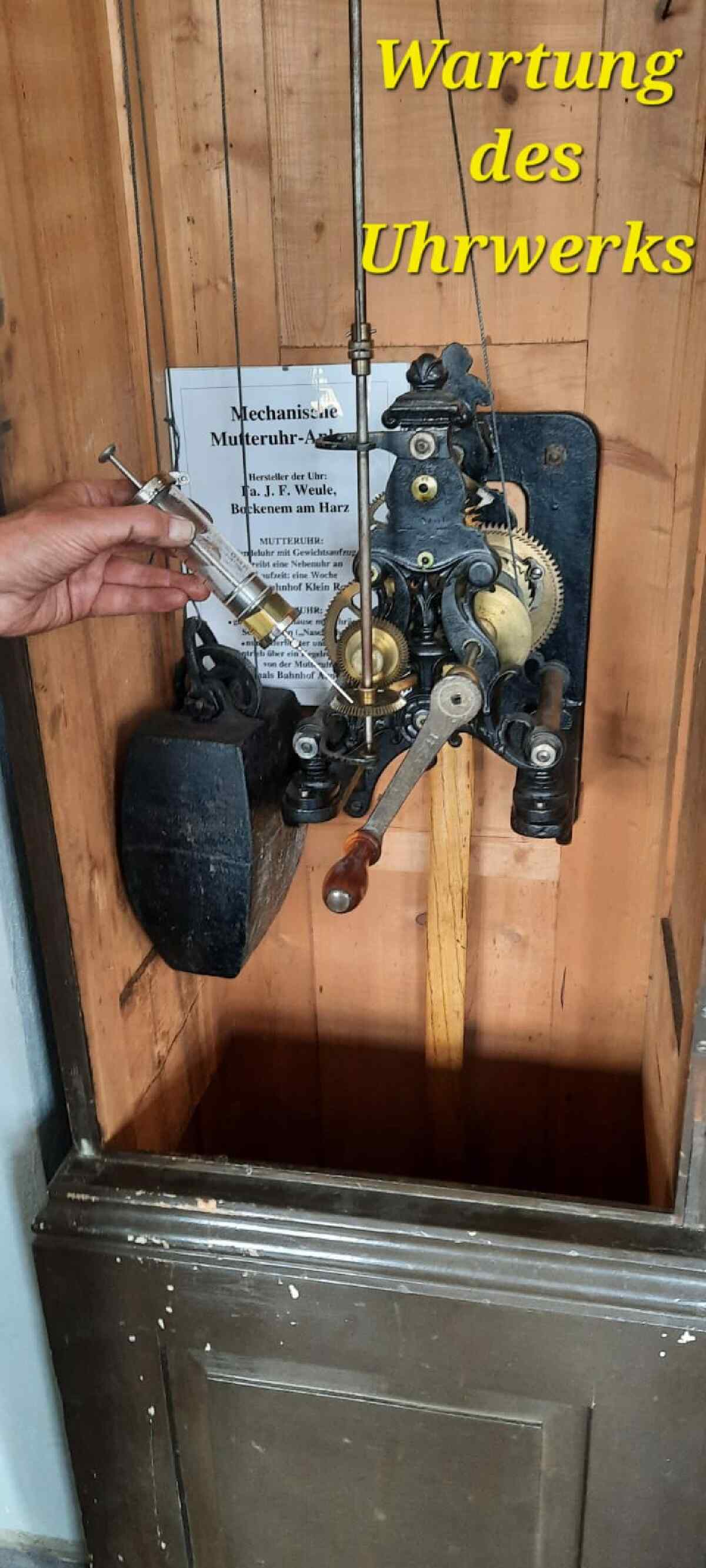 Mit dem Uhrwerk wurden die auf dem Läutewerk befindlichen Glocken mehrfach geschlagen, z.B. sechsmal hintereinander. Damit immer gewährleistet war, dass die Läutewerke auch funktionierten, musste sie regelmäßig gewartet und ihre Uhrwerke aufgezogen werden. Diese Aufgabe oblag an allen Eisenbahnstrecken Streckenposten/Streckenwärtern.