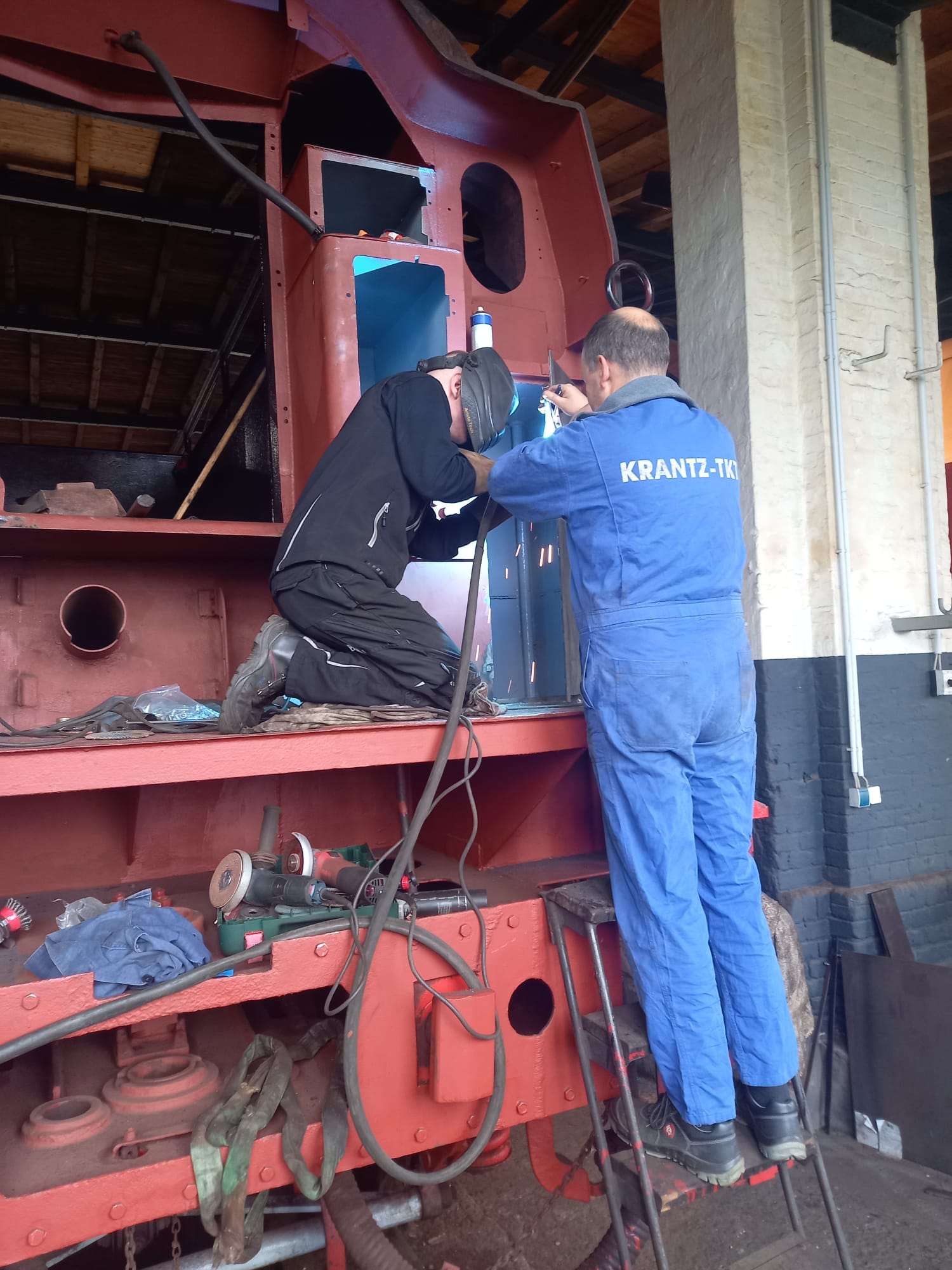 Im Lokschuppen waren die Schweißer und Schlosser fleißig und haben an den Fahrzeugen gearbeitet. In der Werkstatt waren alle Arbeitsplätze belegt.