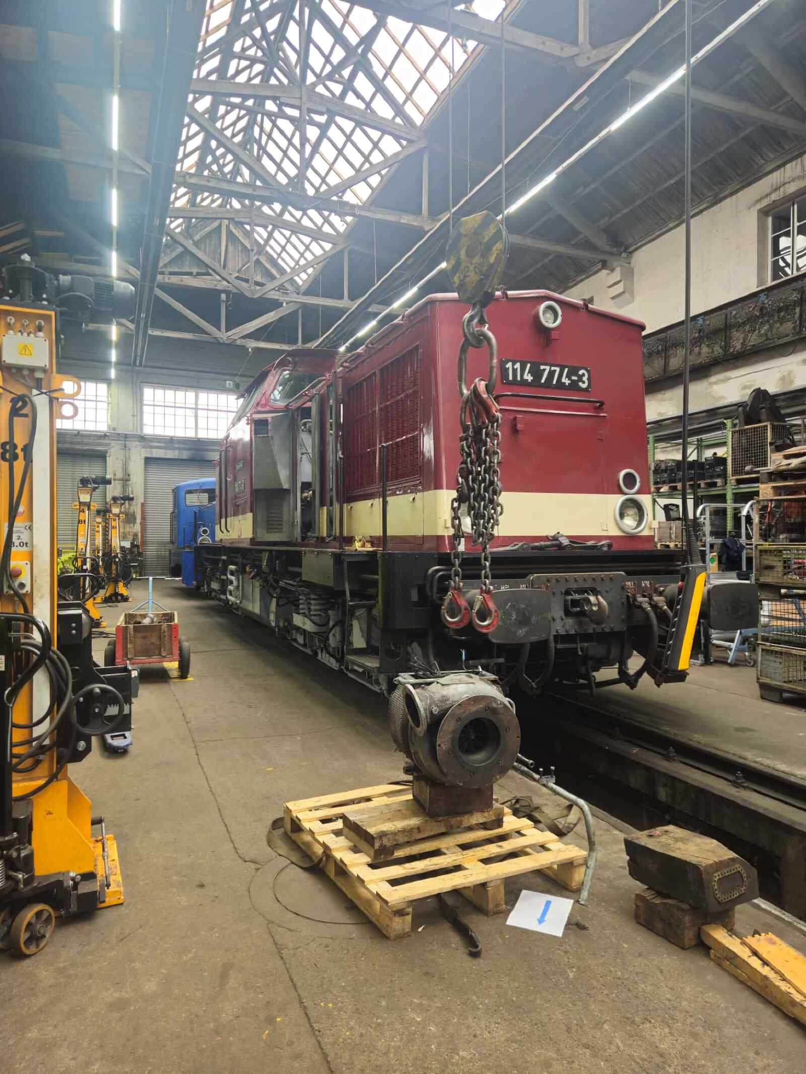 Da man bekanntlich nie genug Ersatzteile für die betriebsfähigen Lokomotiven haben kann, freuen wir uns über zwei schwergewichtige Neuzugänge in Form von zwei Dieselmotoren. Sie passen in unsere Dieselloks 114 774 und 118 754 und werden zunächst auf dem Museumsgelände eingelagert in der Hoffnung, dass wir sie so schnell nicht benötigen. Aber wie heißt es so schön? Besser haben als brauchen.