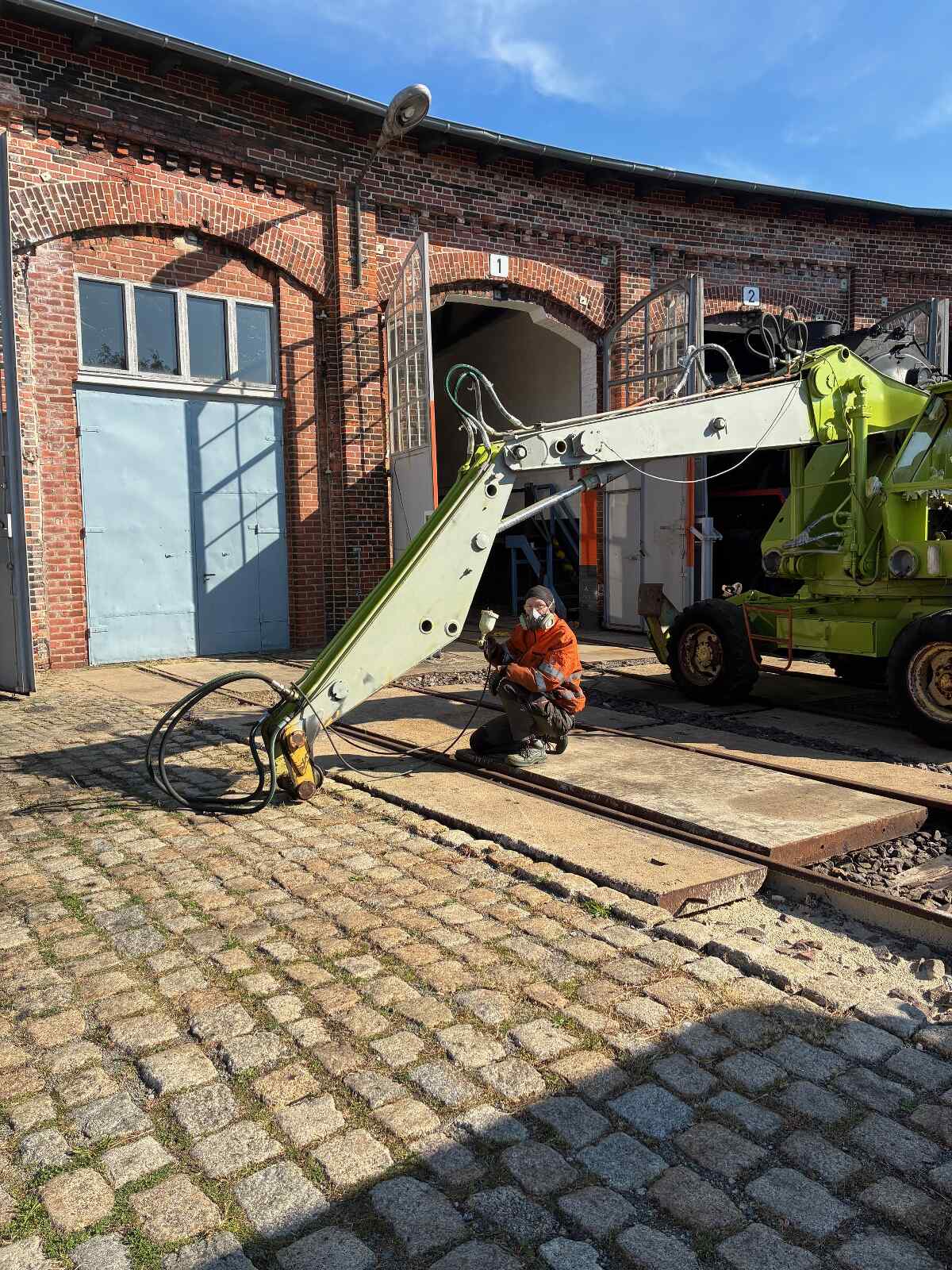 Fortschritte macht zu Glück auch unser Bagger T174. Nachdem nun alle Arbeiten an seinem Innenleben und seinem Blechkleid abgeschlossen wurden, wird er derzeit lackiert in der typisch grünen Farbe, an die sich der ein oder andere vielleicht noch aus DDR-Zeiten erinnert. Nun müssen noch die neuen bzw. aufbereiteten Scheiben und die Lampen eingebaut werden. Zuletzt wird er noch beschriftet und steht uns dann hoffentlich wieder für eine lange Zeit für Arbeiten im Museum zur Verfügung.