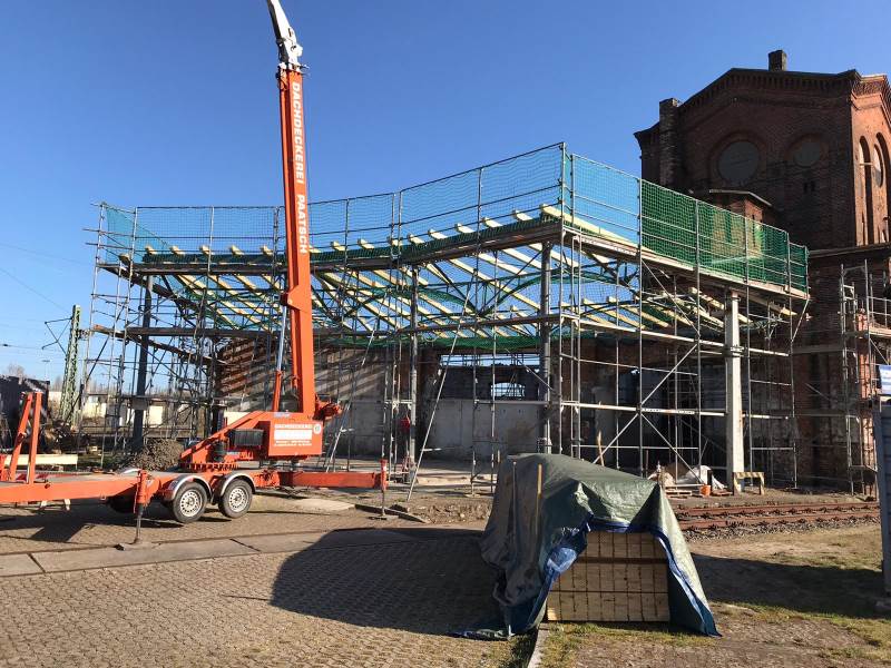 Wer die Verhältnisse im alten Bw Wittenberge kennt, weiß, dass es ehemals zwei Drehscheiben und noch einen weiteren Lokschuppen gab. Der Schuppen war als sogenannte Rotunde ausgebildet, also ehemals ein vollkommen geschlossenes Gebäude mit innen liegender Drehscheibe. Leider wurde das ganze bzw. die Reste davon Ende des letzten Jahrtausends abgerissen bzw. verschrottet. Nun, da man ja nie genug Platz in einem Museum haben kann, entstand vor einiger Zeit der Plan, doch mittelfristig an einen Wiederaufbau der Drehscheibe, Gleise und später Teilen des Gebäudes zu denken. Und manchmal geht es schneller als man denkt: So konnten wir kurzfristig die 20-Meter-Drehscheibe des ehemaligen Bahnbetriebswerkes Parchim erwerben, die noch relativ jung ist. Diese wurde in den letzten beiden Tagen demontiert und die Einzelteile nach Wittenberge verfrachtet. Als nächstes werden wir die Teile aufarbeiten, dann eine neue Grube erstellen. Unser Dank gilt allen Beteiligten für die schnelle und unkomplizierte Abwicklung. Die Fotos stammen von Dirk Endisch und entstanden am 12. und 13.1.2016.